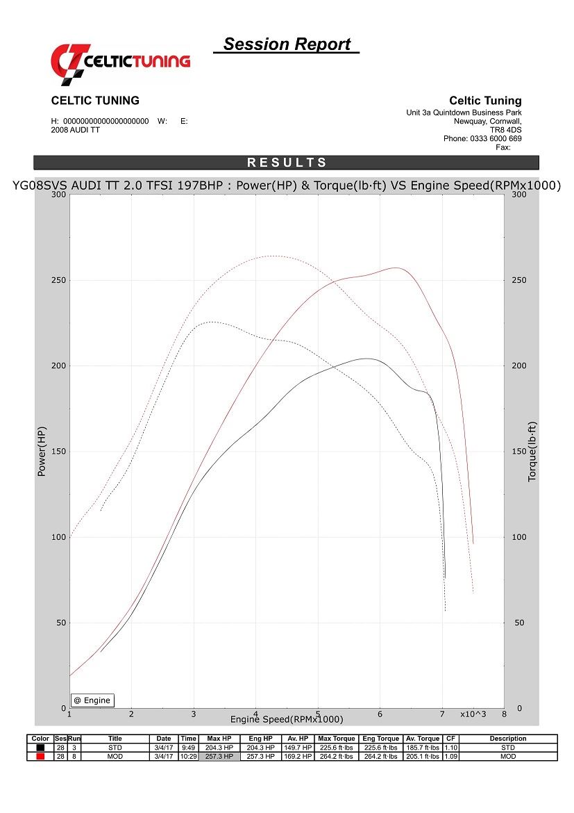 Chart 4 is of an Audi TT 2.0 TFSi 197bhp with Bosch MED9.1 management system. You can see it made around stock figures producing 204bhp and a modified peak of 243bhp.
